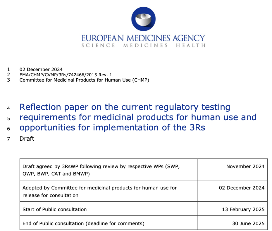 EMA:当前人用药品监管测试要求与实施3Rs机会(2025.02最新)