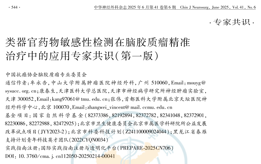 《类器官药物敏感性检测在脑胶质瘤精准治疗中应用专家共识》封面