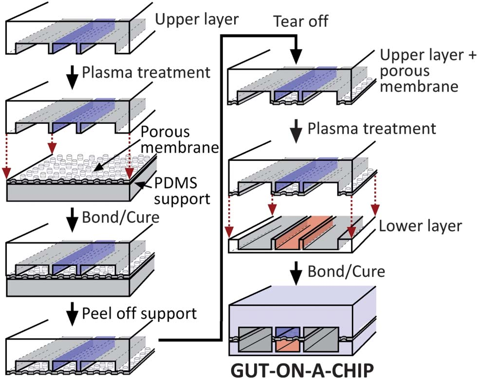 人类肠道芯片微装置提供了一个可控的微平台,在相关生理线索下(包括循环的机械应变、流体流动和微生物菌群的共存)研究关键的肠道功能。该装置重现了活的肠道中经历的低水平的液体流动和剪切应力,以促进肠道上皮细胞加速分化,形成三维绒毛状结构,并增加肠道屏障功能;加入模拟正常蠕动的循环机械应变则进一步增强了这些反应。在肠道芯片内分化的肠道上皮细胞可以支持正常生活在人类肠道内的微生物菌群的生长。因此,蠕动的人类肠道芯片可能有助于研究肠道功能的机械调节,以及宿主与微生物的共生和进化。鉴于它有效地再现了正常人类肠道的许多复杂功能,它也可能成为药物筛选和毒理学测试的一个重要平台。
