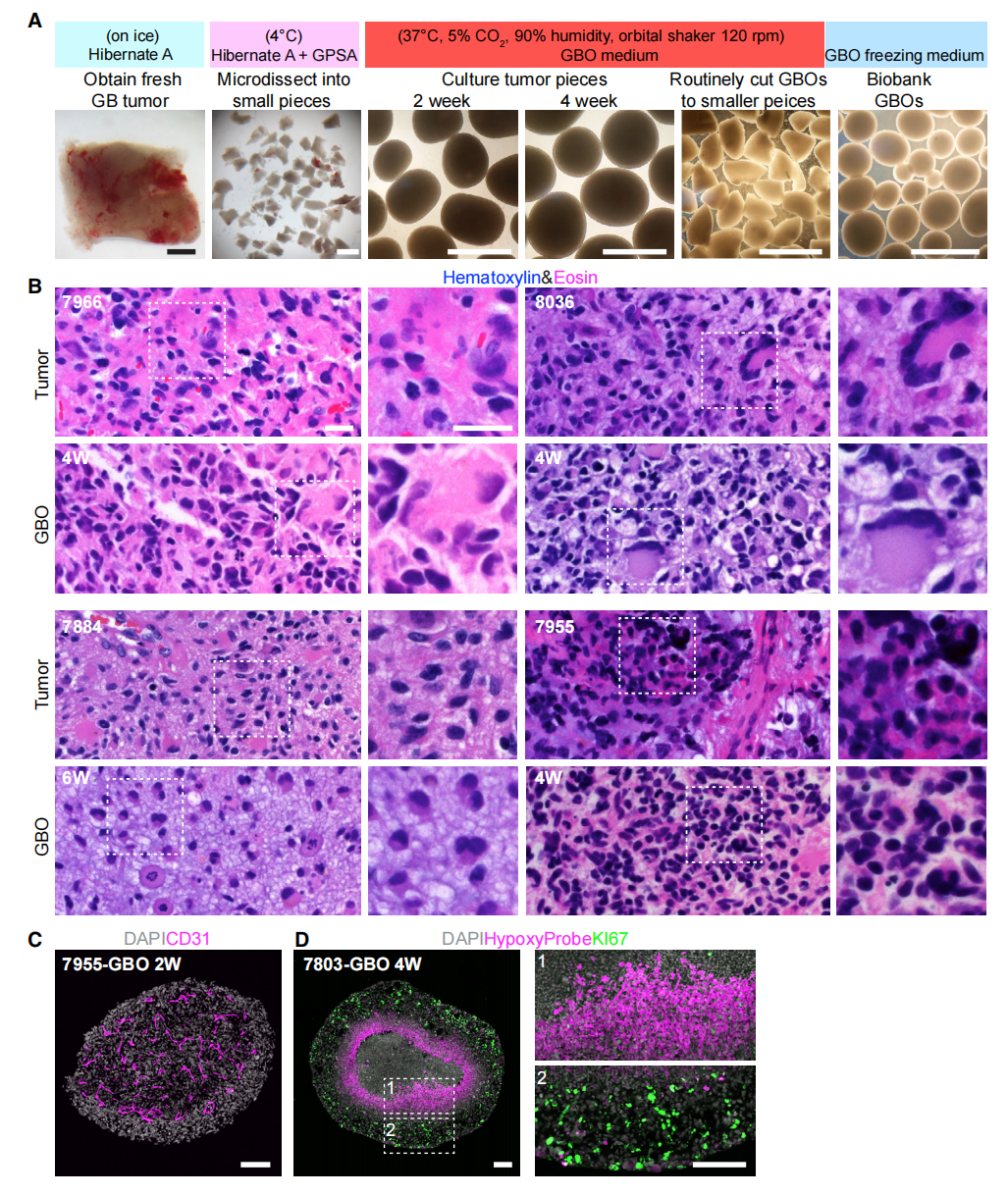 图1. 保留亲本肿瘤组织学特征的GBO的产生