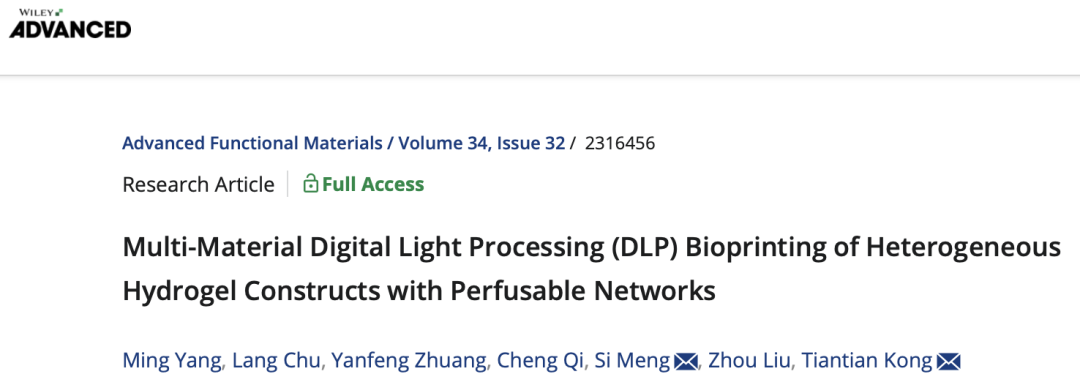《Advanced Functional Materials》多材料 DLP 生物3D打印构建可灌注异质水凝胶结构