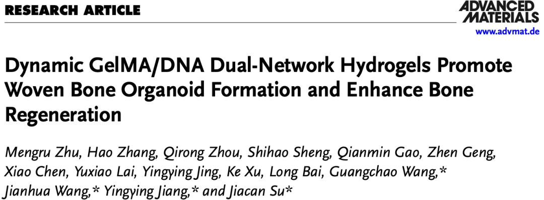 《Advanced Materials》GelMA/DNA双网络动态水凝胶构建骨类器官