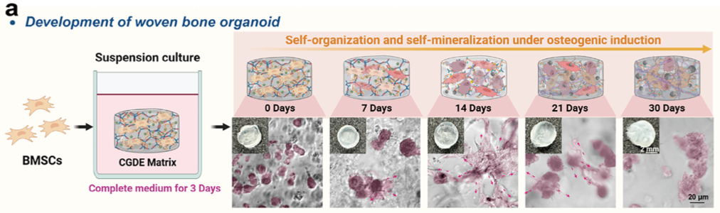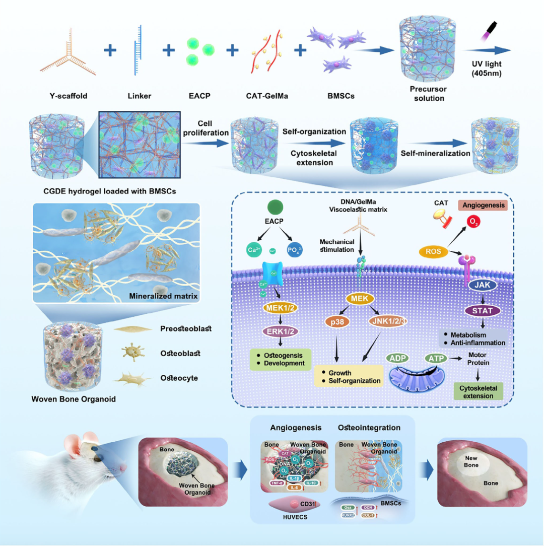 用于骨组织再生的CGDE基质内编织骨类生物(WBOs)动态CGDE水解发育设计的示意图 (Zhu et al., 2025)